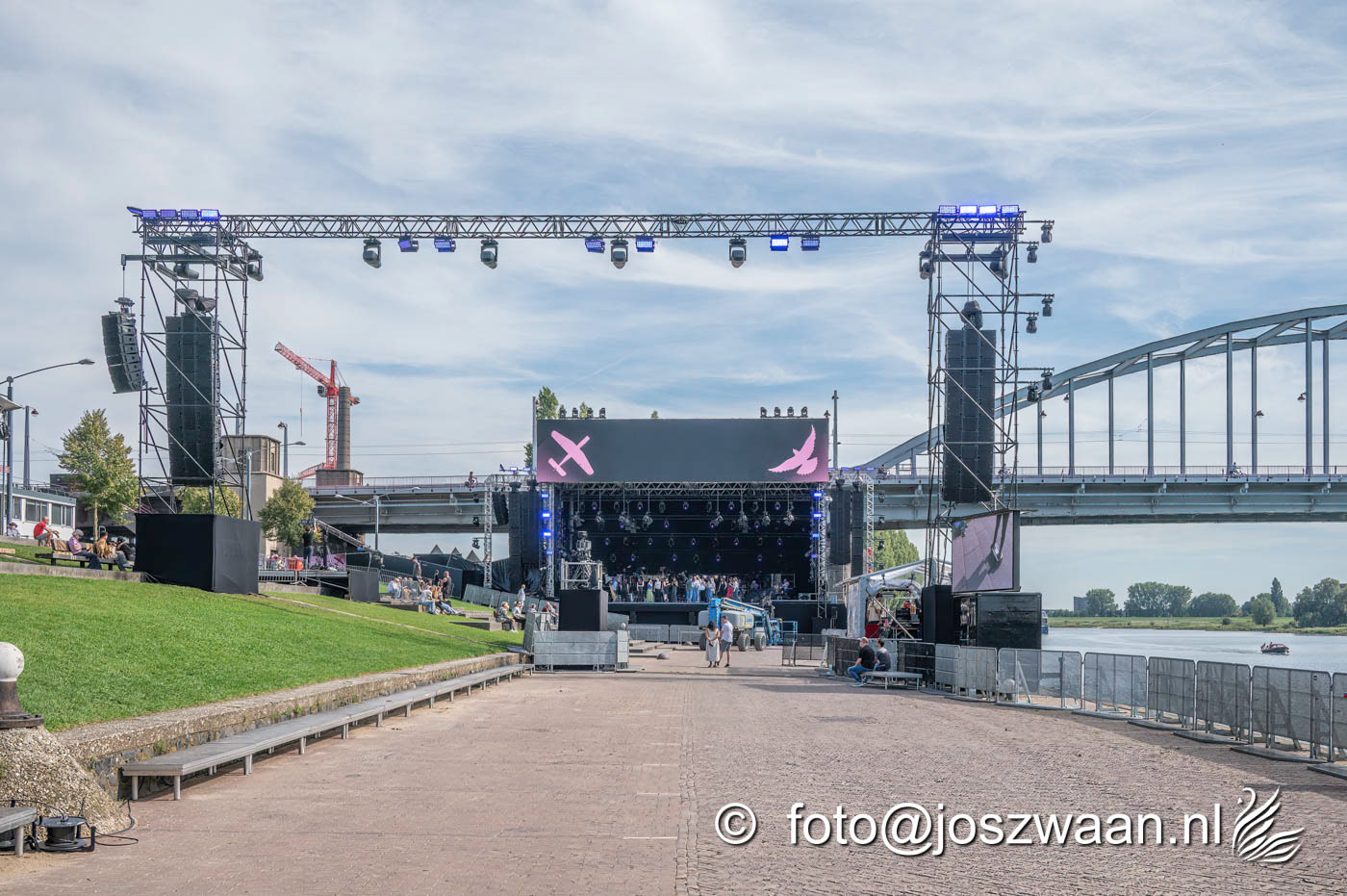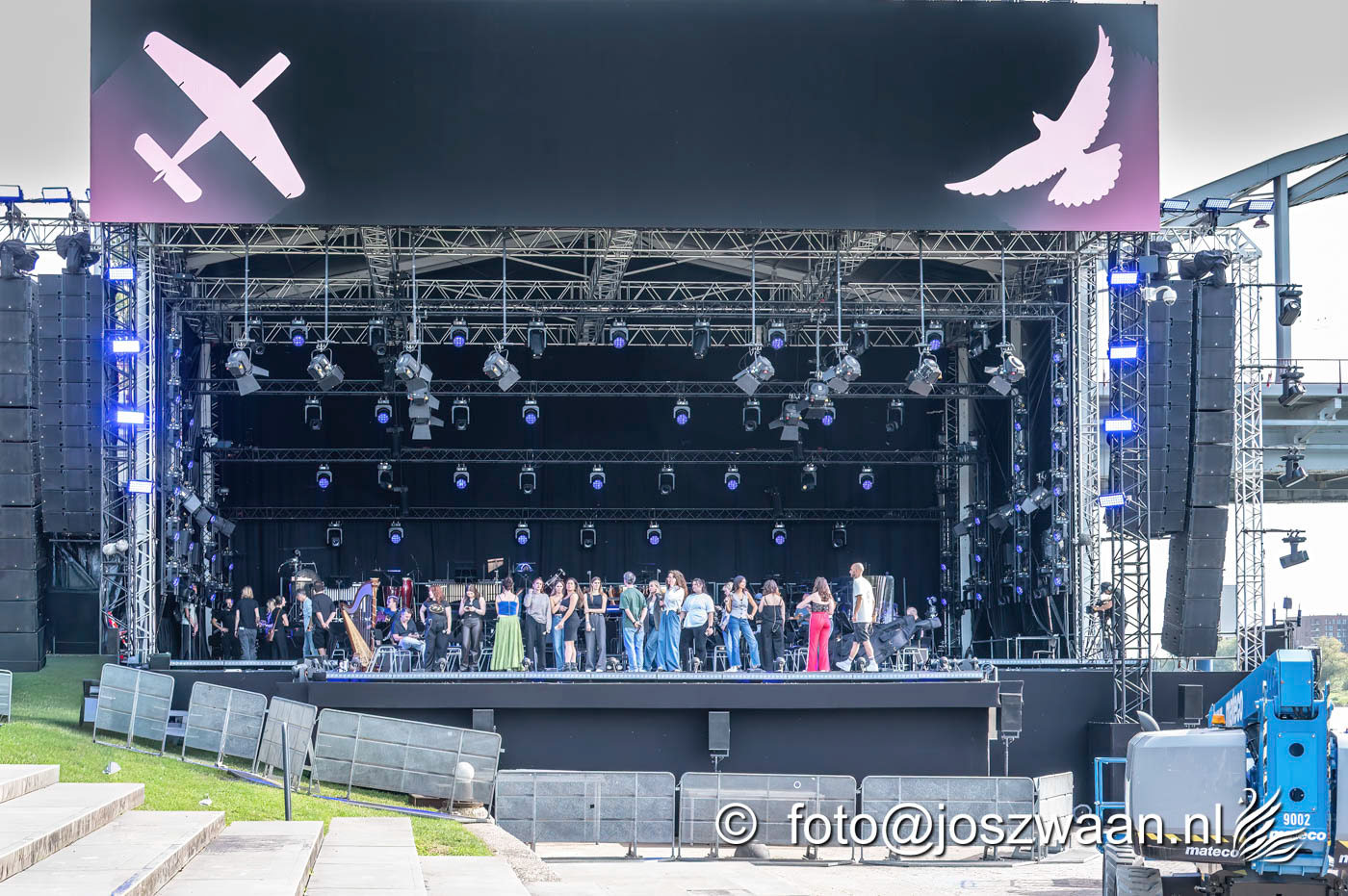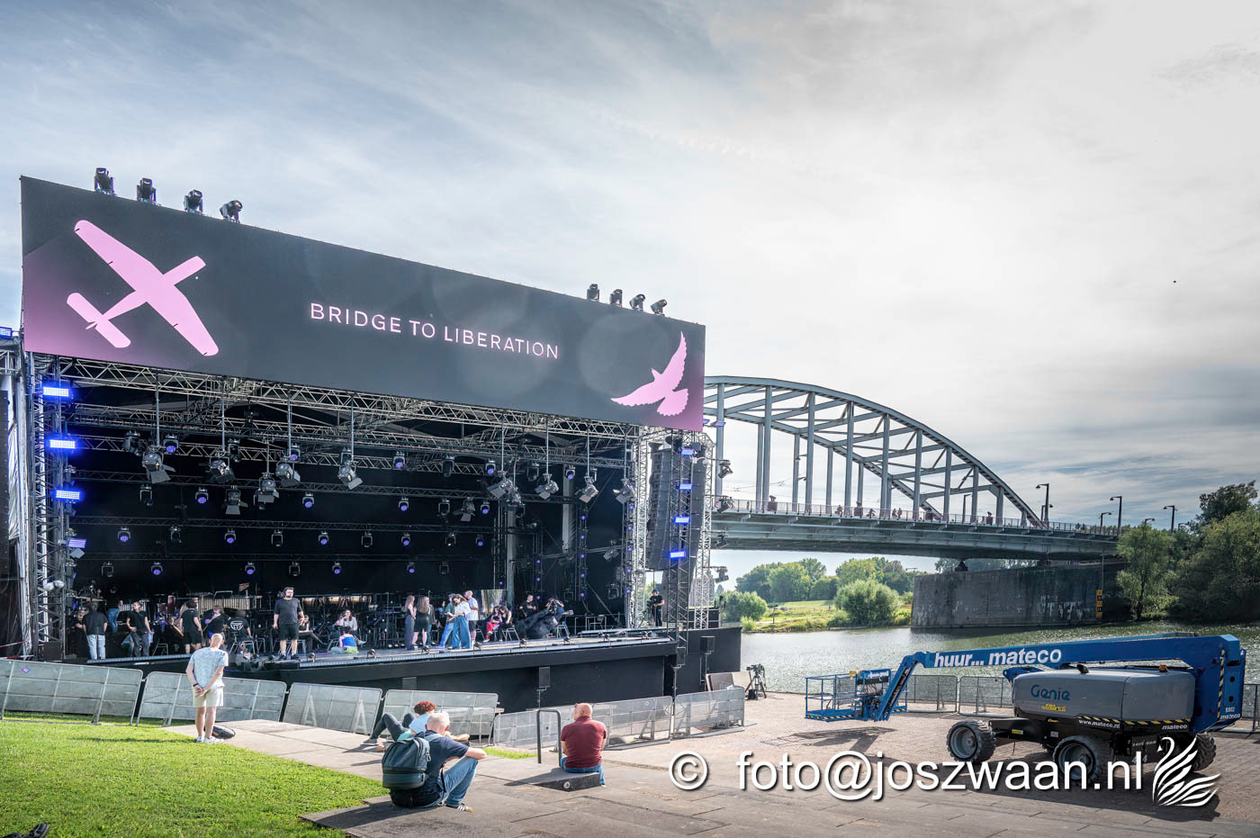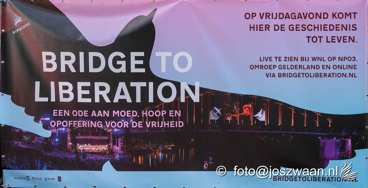 Foto's van de voorbereiding op vrijdag 19 september 2025 van de herdenkingsshow Bridge to Liberation aan de John Frostbrug. Dit jaar staat de show in het teken van de herdenking van de Slag om Arnhem en de impact van oorlog op nieuwe generaties.
