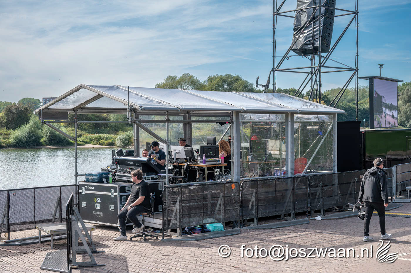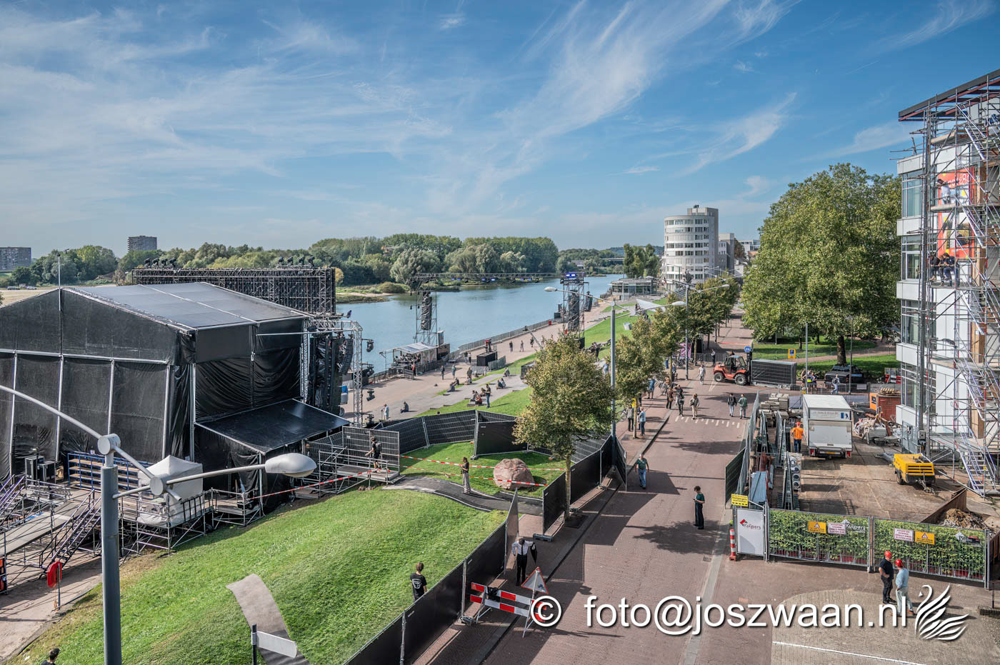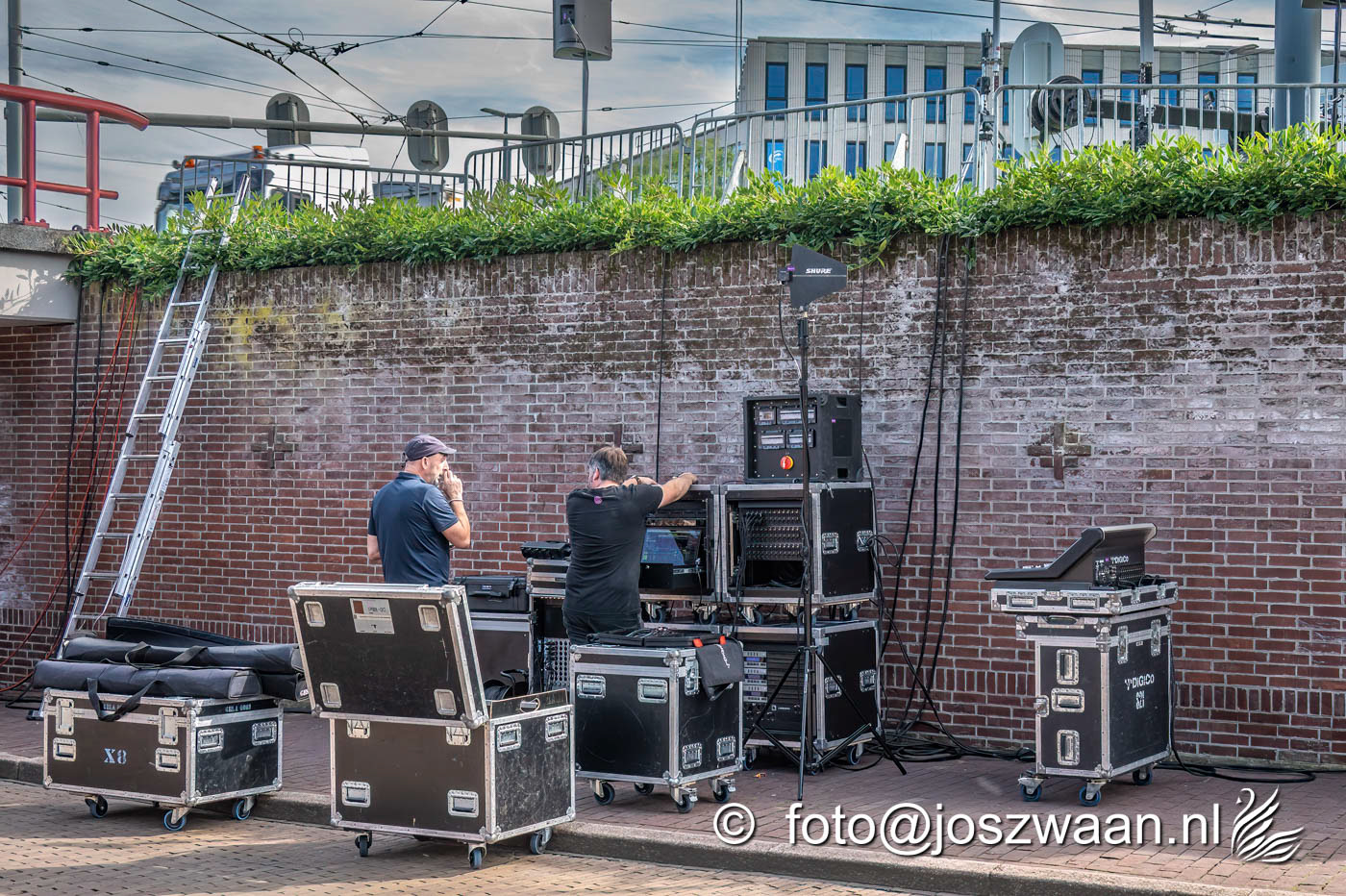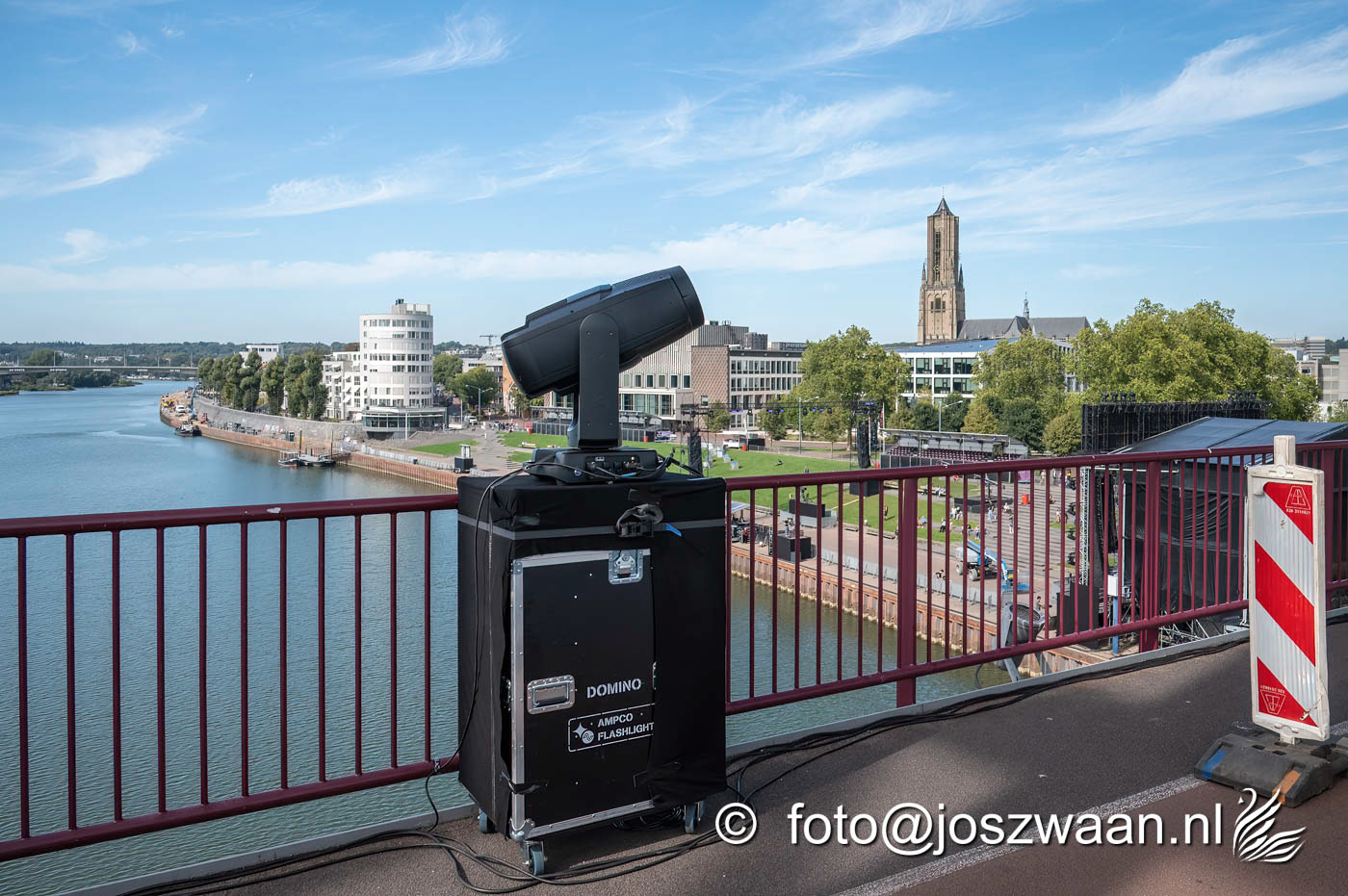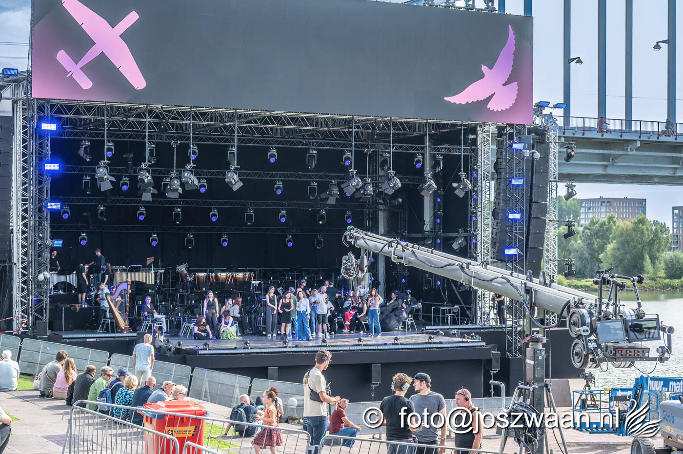 Foto's van de voorbereiding op vrijdag 19 september 2025 van de herdenkingsshow Bridge to Liberation aan de John Frostbrug. Dit jaar staat de show in het teken van de herdenking van de Slag om Arnhem en de impact van oorlog op nieuwe generaties.