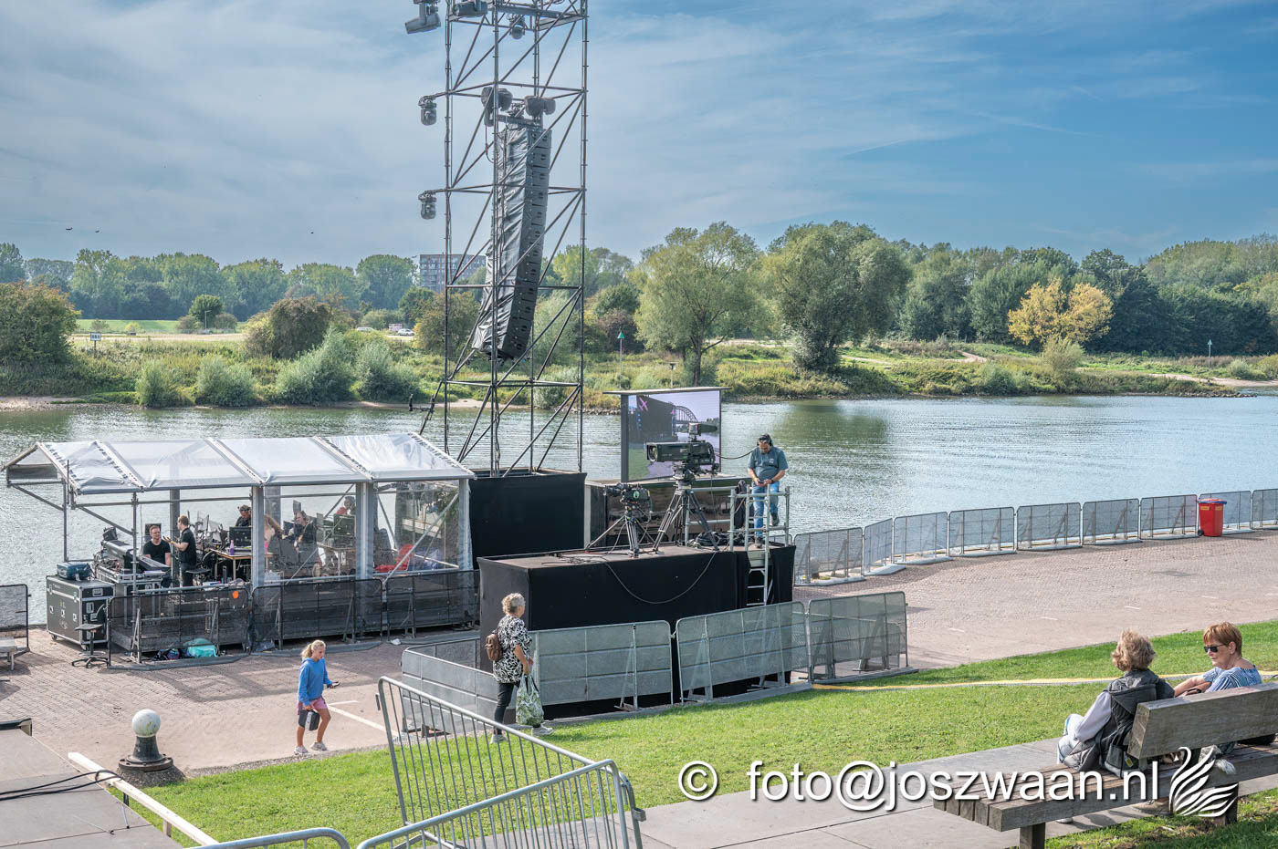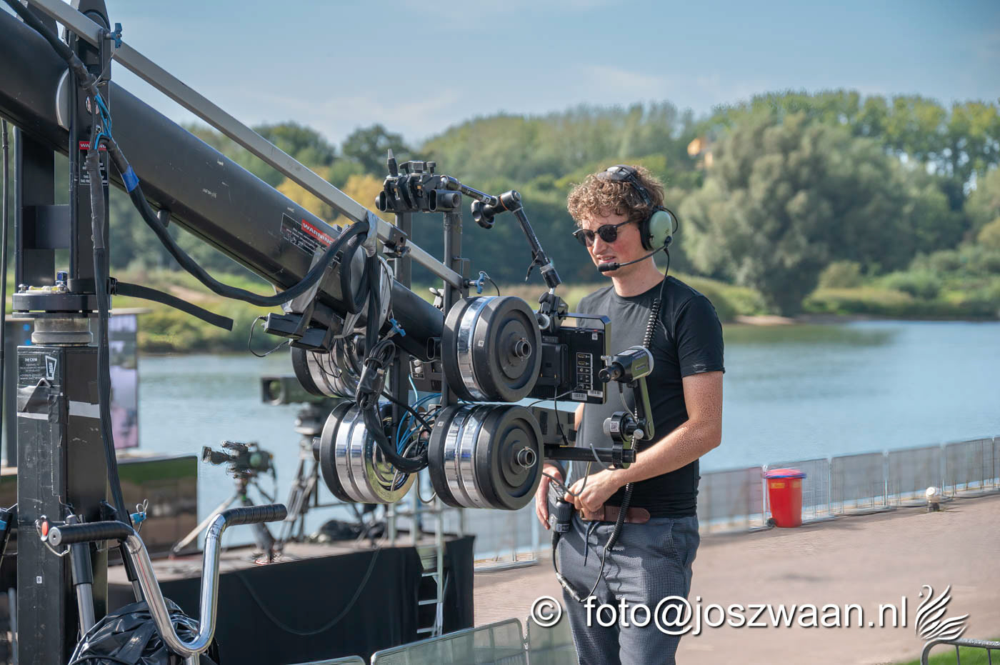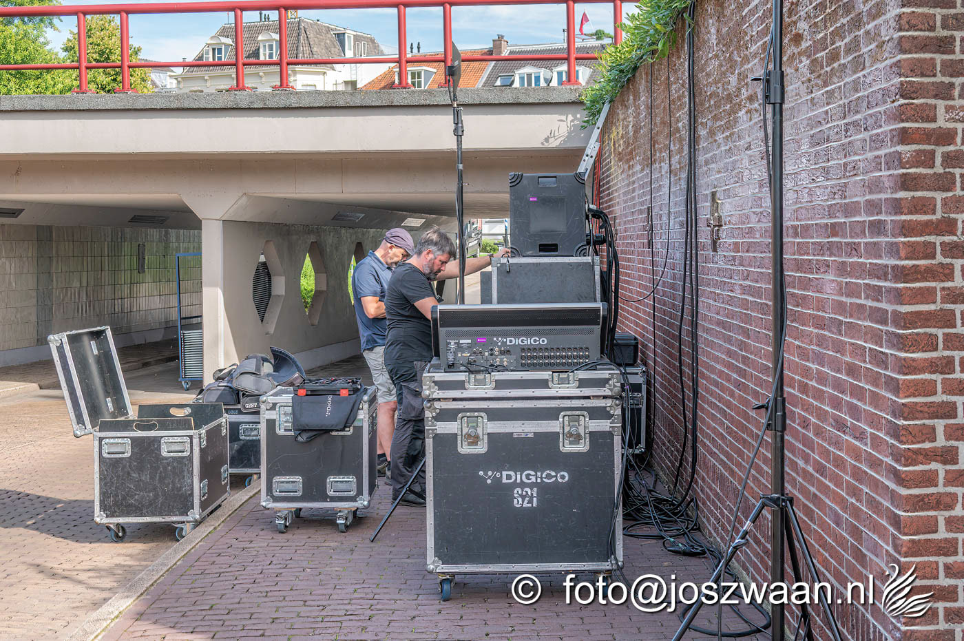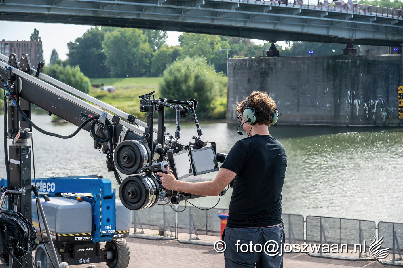 Foto's van de voorbereiding op vrijdag 19 september 2025 van de herdenkingsshow Bridge to Liberation aan de John Frostbrug. Dit jaar staat de show in het teken van de herdenking van de Slag om Arnhem en de impact van oorlog op nieuwe generaties.