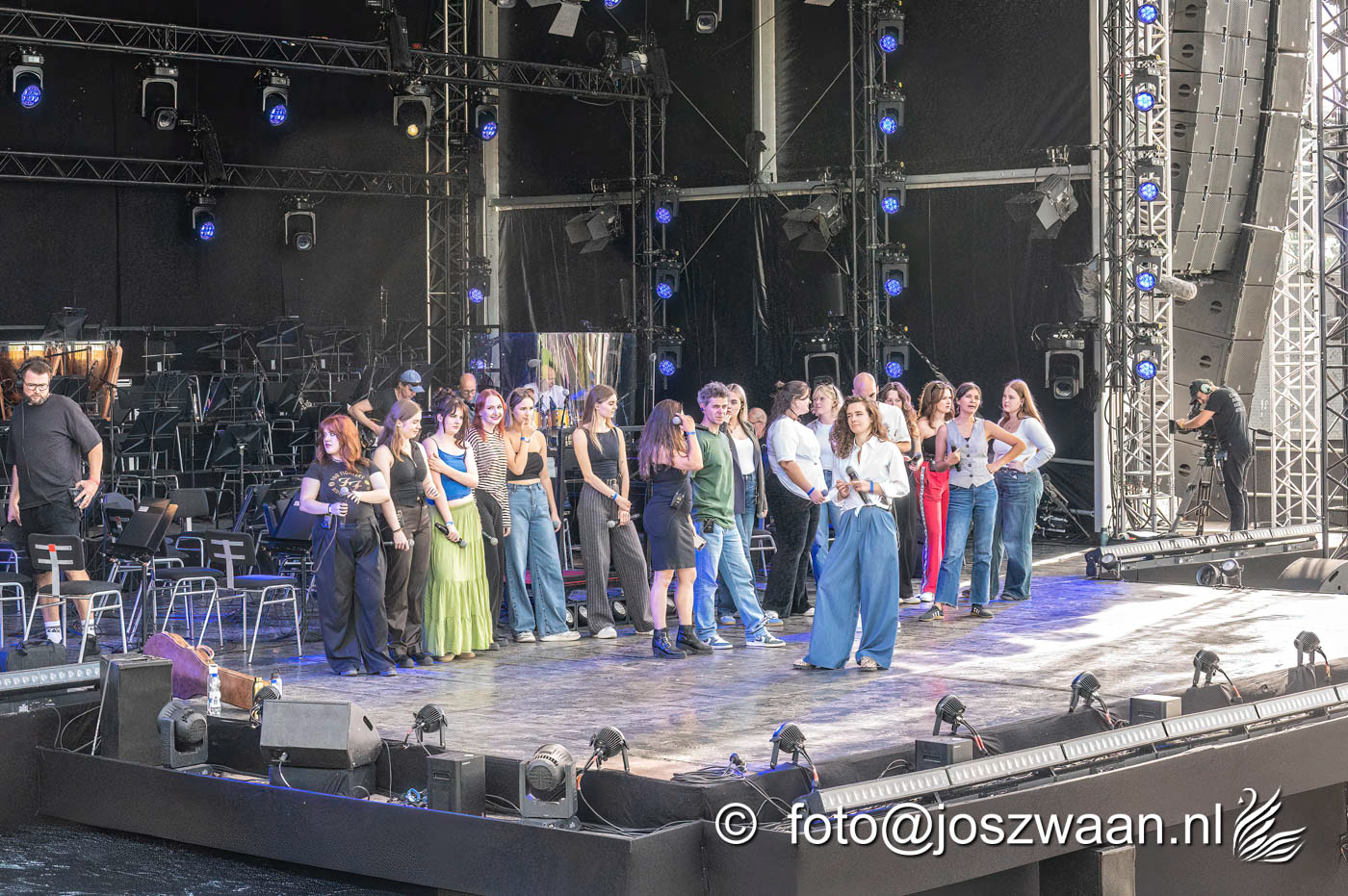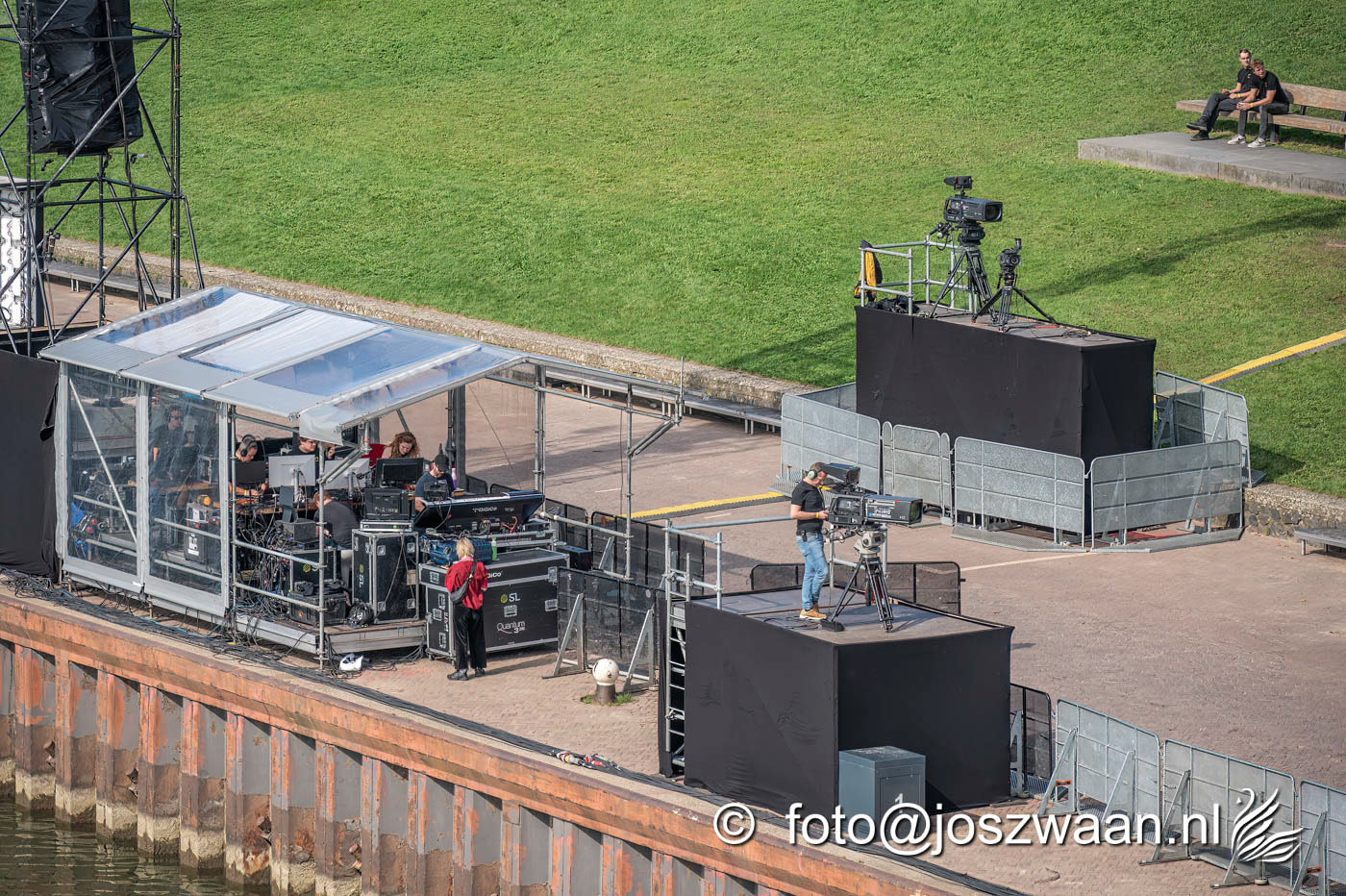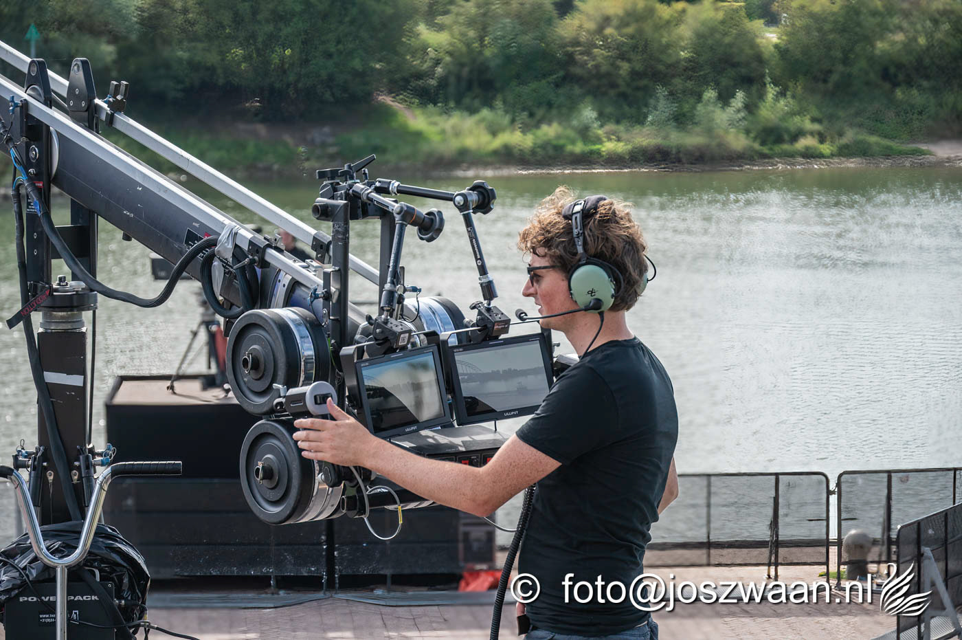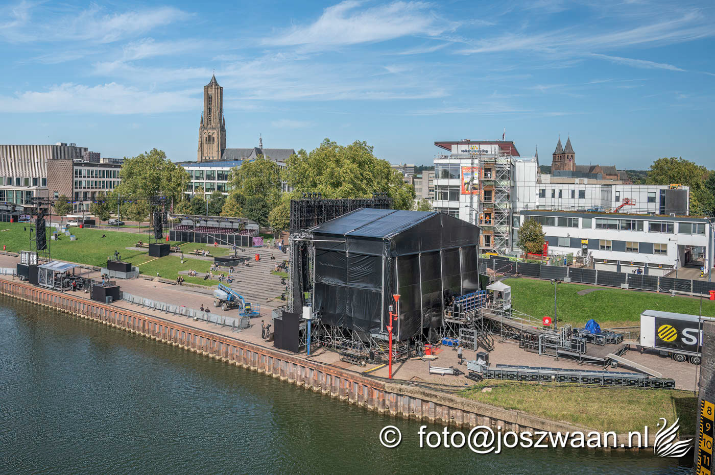 Foto's van de voorbereiding op vrijdag 19 september 2025 van de herdenkingsshow Bridge to Liberation aan de John Frostbrug. Dit jaar staat de show in het teken van de herdenking van de Slag om Arnhem en de impact van oorlog op nieuwe generaties.